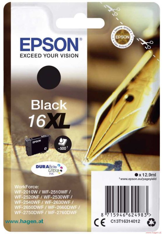 Inkjetpatrone Nr. 16XL schwarz EPSON C13T16314012 12,9ml