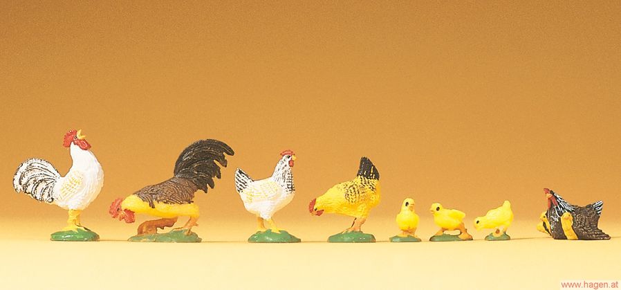 PREISER 47070 - 2 HÄHNE, 2 HÜHNER, GLUCKH