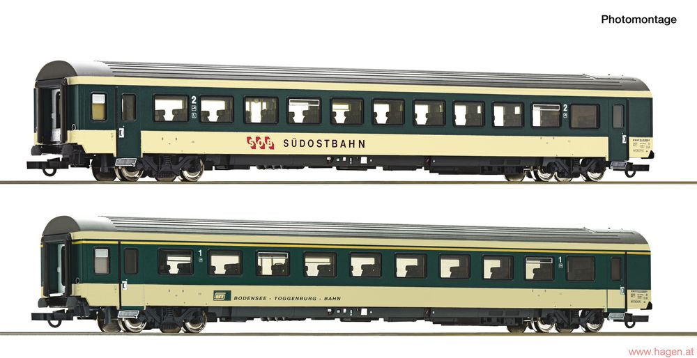 Modell: 2-tlg. Set 2: Reisezugwagen ?Voralpen-Express? in Epoche 45