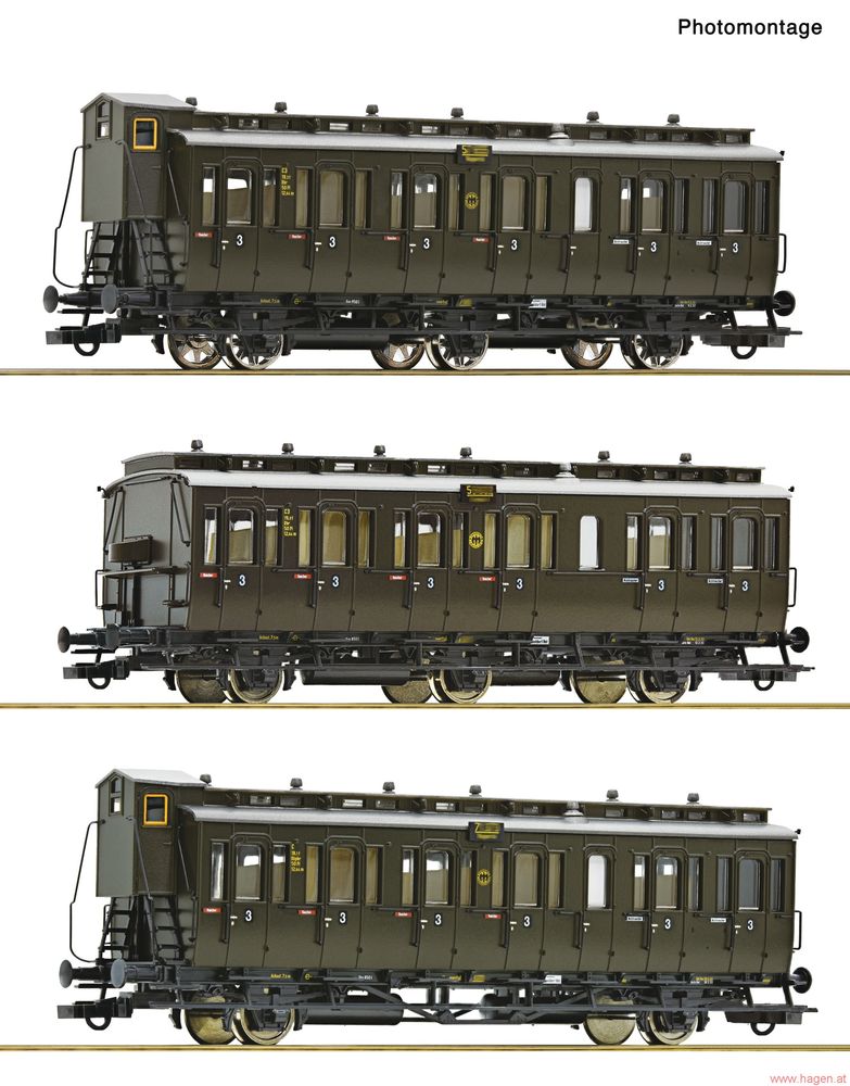Modell: 3-tlg. Set: Personenwagen in Epoche 2