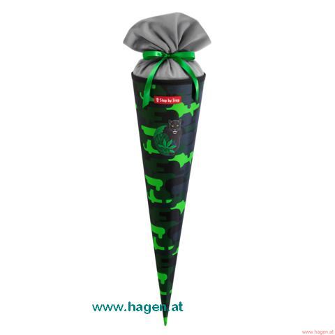 Design/Motiv: Black Cat Chiko, Farbe: Grau/Grün, Farbton: Grau/Grün, Motivwelten: Tiere, Serie: Schultüte, Material: 100% Polyester, Nachhaltigkeit: 100 % PFC-freie Beschichtung/100% vegan/FSC-Papier/Recycled/Ressourcen- und Umweltschonend produziert, Außenmaß Höhe: 70 cm, Durchmesser Außen: 18 cm, Durchmesser Innen: 17 cm, Gewicht ca.: 240 g, Innenmaß Höhe: 64 cm, Volumen: 5 l, Empfohlene Anwendung: Einschulung,